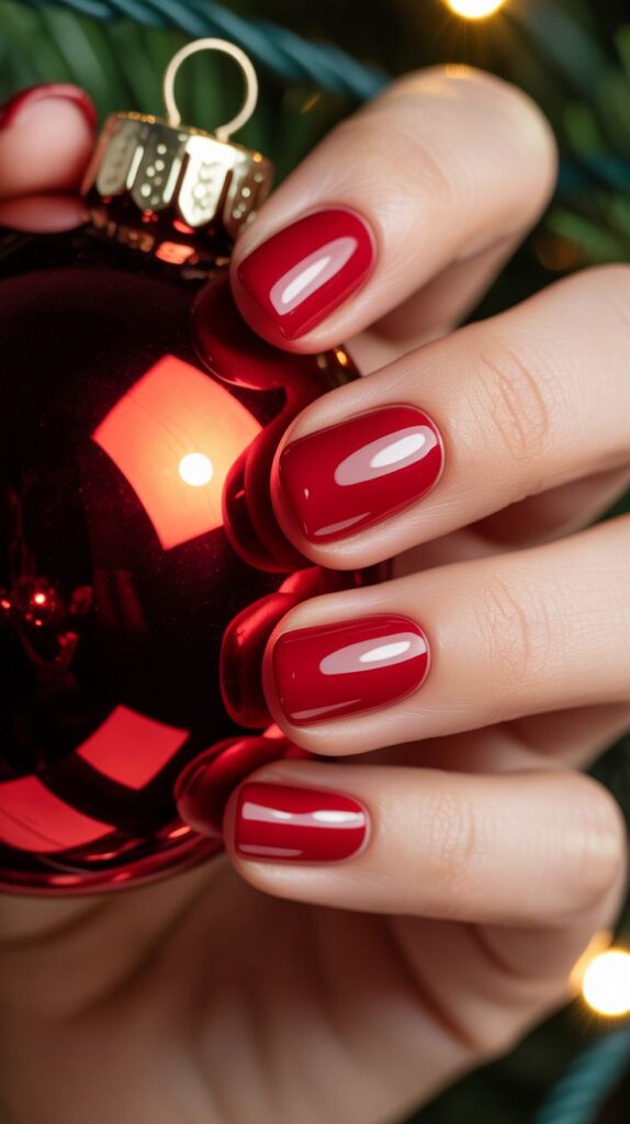 🎀 Try Nail Art Details: Candy canes, snowflakes, or gold foil can transform a simple red base into festive art.