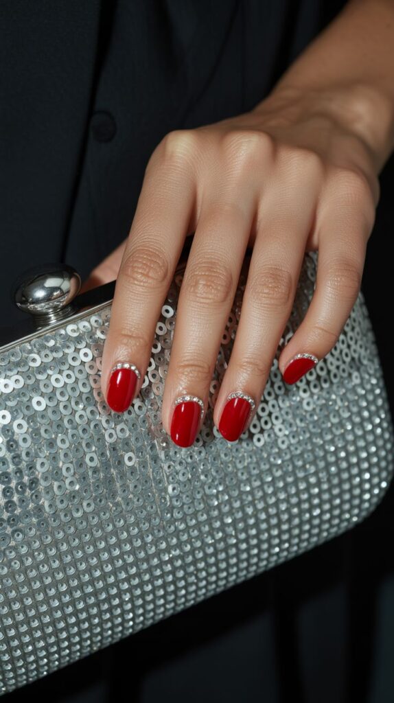 Add sparkle with intention just one or two rhinestones near the cuticle can elevate a simple red manicure into a sophisticated showpiece. It’s festive yet effortlessly classy.