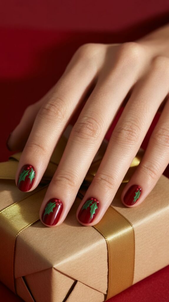6. Holly Leaf Accent Nails
