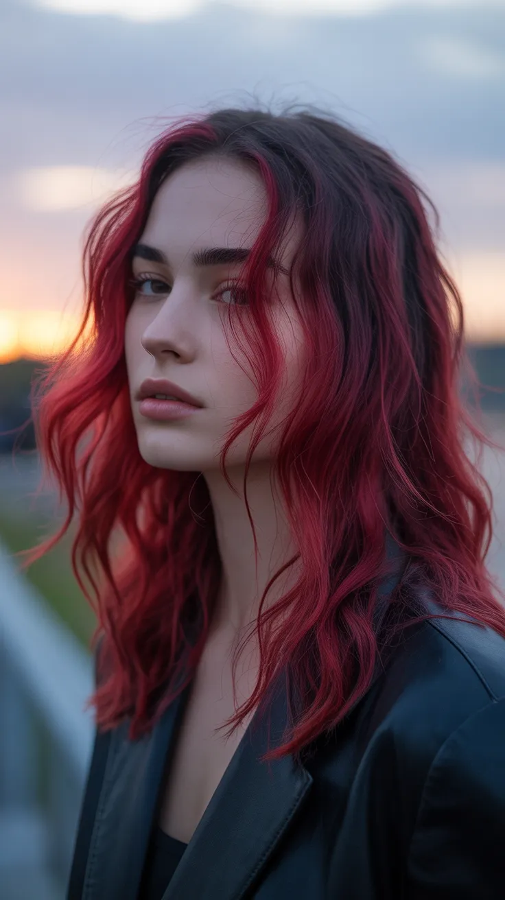 This style is not just about color; it’s about the movement and texture of the hair. The waves add dimension, making the colors pop even more. If you’re looking for salon hair inspiration, this could be your go-to choice for a dramatic hair color transformation.