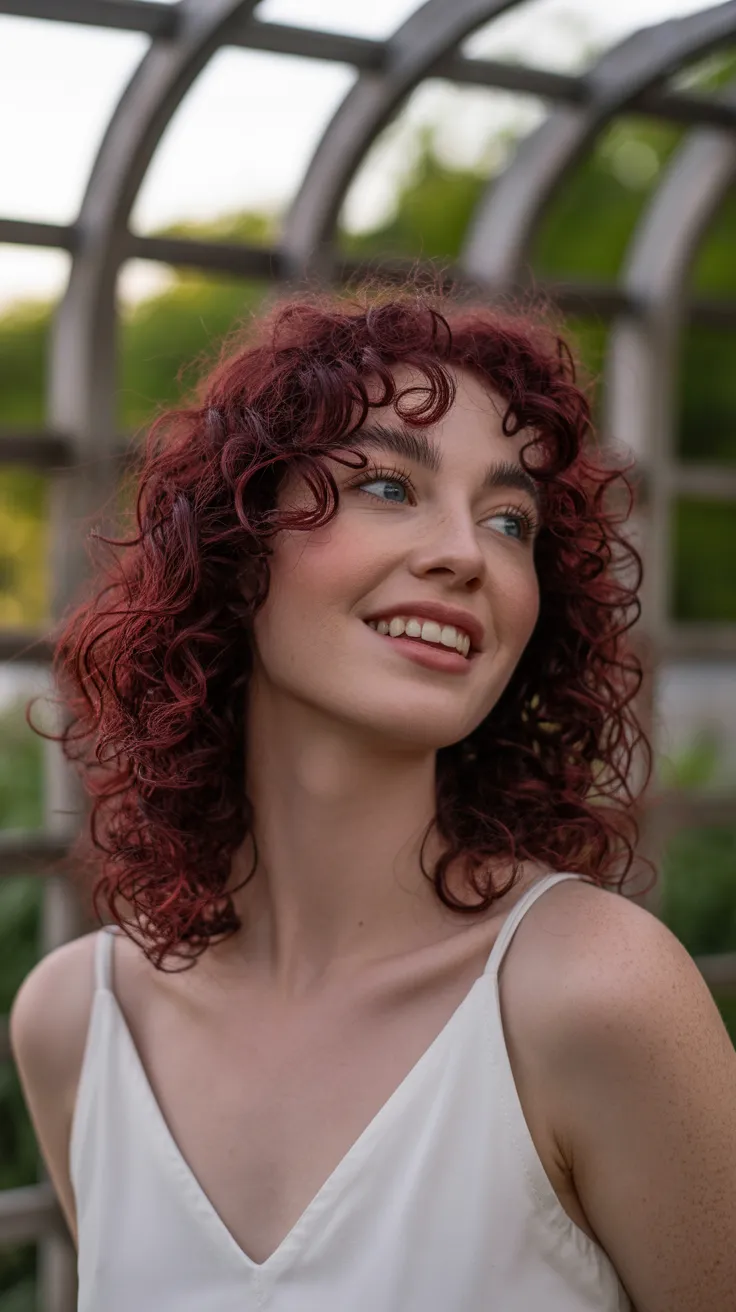 The curls add volume and texture, making the color pop even more. This style is not just about the color; it’s about the playful, bouncy curls that frame the face beautifully. Whether you’re heading to a special event or just want to switch things up, raspberry wine curls can give you that bold hair inspo you need.