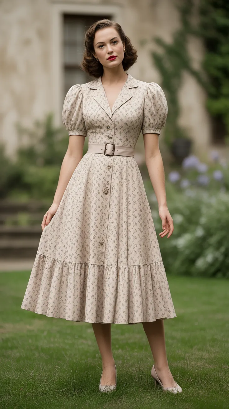 1. 1940S Tea-Length Dress With Puff Sleeves