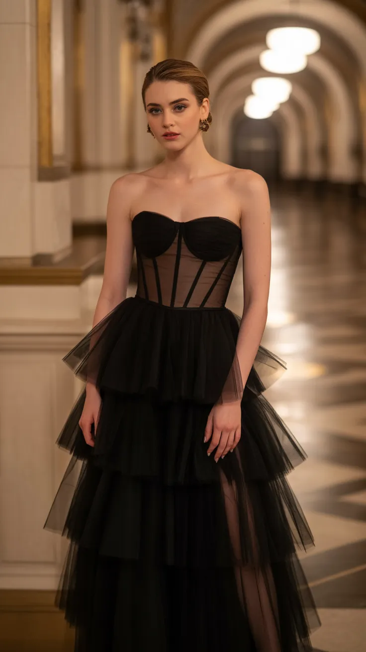 15. Black Tulle Evening Dress With Corset Waist
