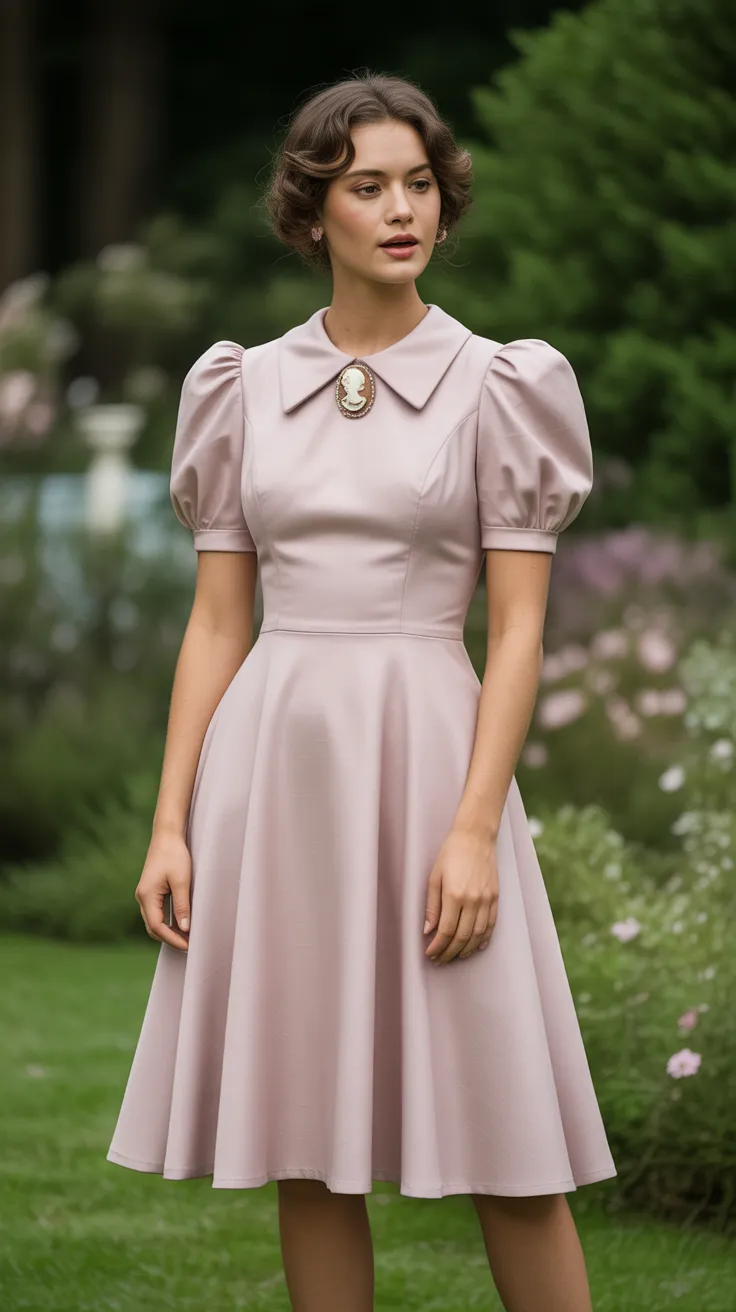 21. Puff Sleeve A-Line Dress With Cameo Brooch