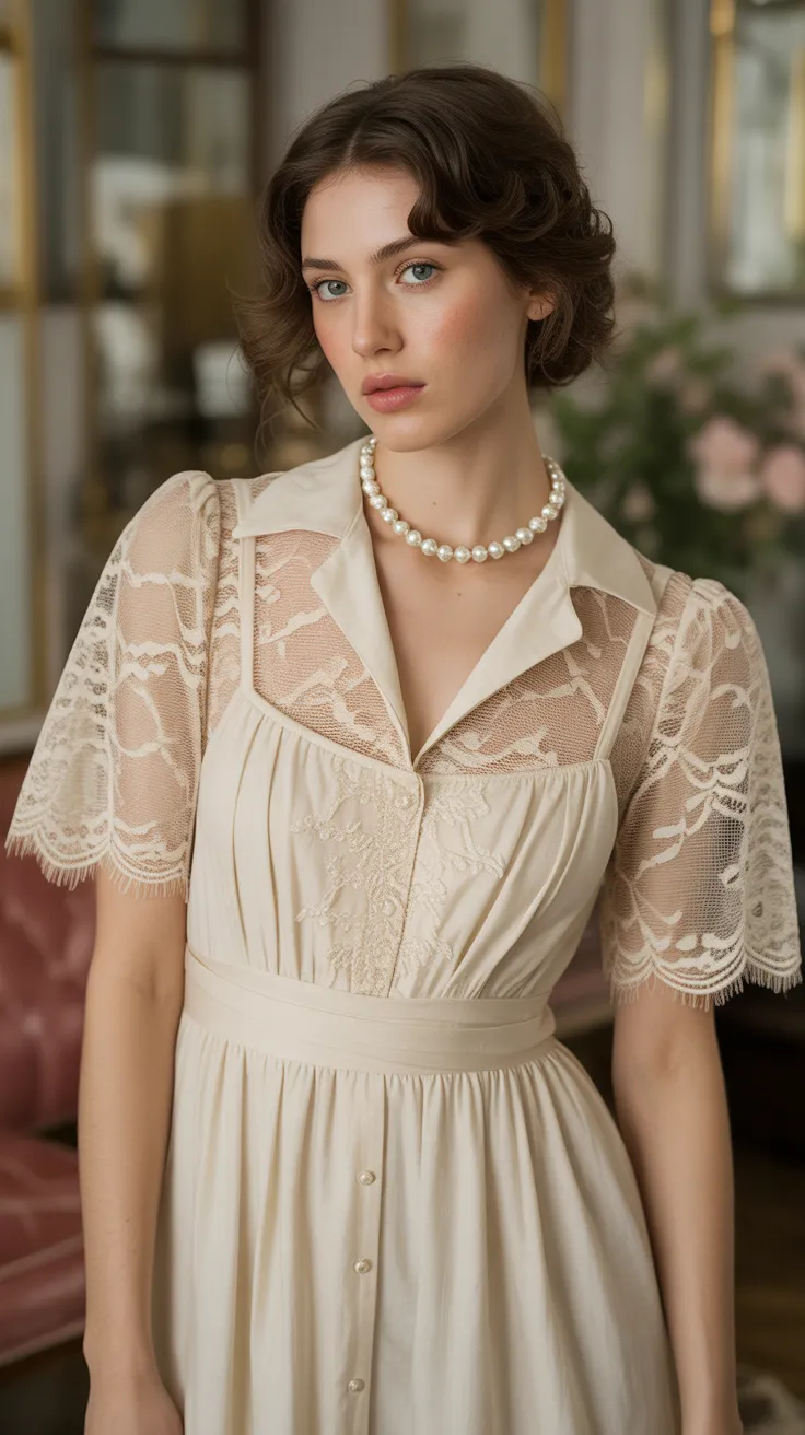 Whether you’re attending a wedding or a fancy dinner, this ensemble will surely turn heads. The combination of lace and pearls highlights the beauty of vintage glam, allowing you to feel confident and stylish.