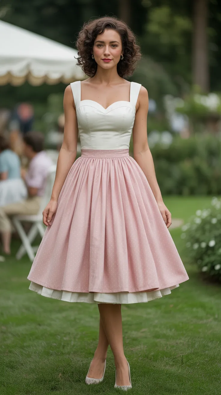 This look is all about celebrating vintage style while keeping it fresh and fun. Whether you’re attending a garden party or simply enjoying a day out, this dress will surely turn heads and spark conversations about vintage fashion.
