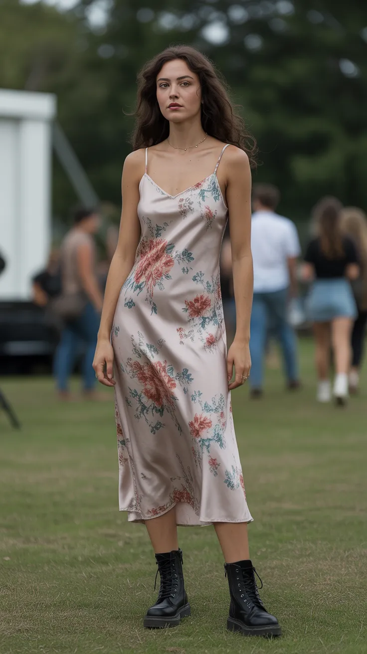 Pairing this dress with combat boots adds an edgy twist. The contrast between the soft floral print and the rugged boots creates a balanced look that is both stylish and comfortable. This combination is a great example of retro 90s outfits for women, blending classic elements with a modern vibe.