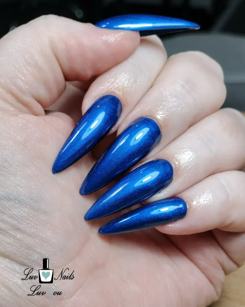 11. High-Shine Royal Blue Stiletto Nails