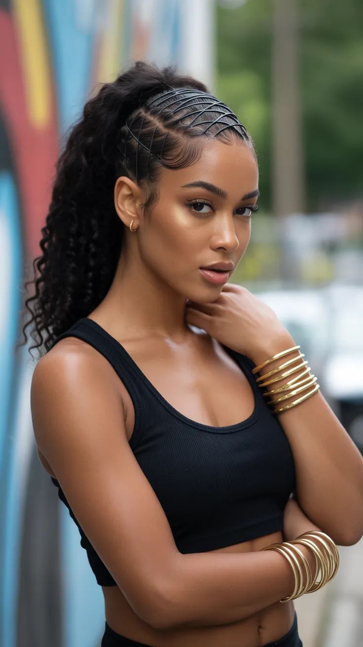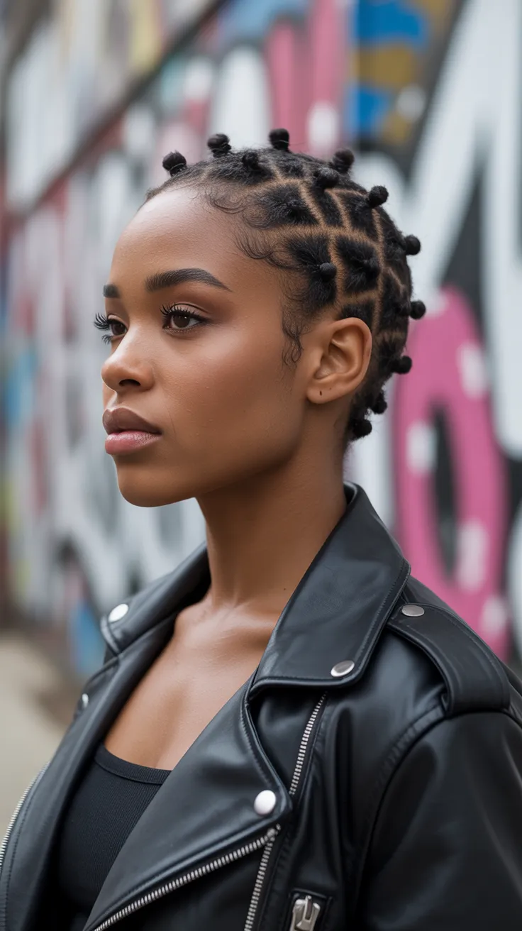 The Rubber Band Criss-Cross Ponytail is a fun and stylish way to showcase natural hair. This hairstyle features a high ponytail with intricate criss-cross patterns created using rubber bands. The look is playful yet chic, making it perfect for various occasions.