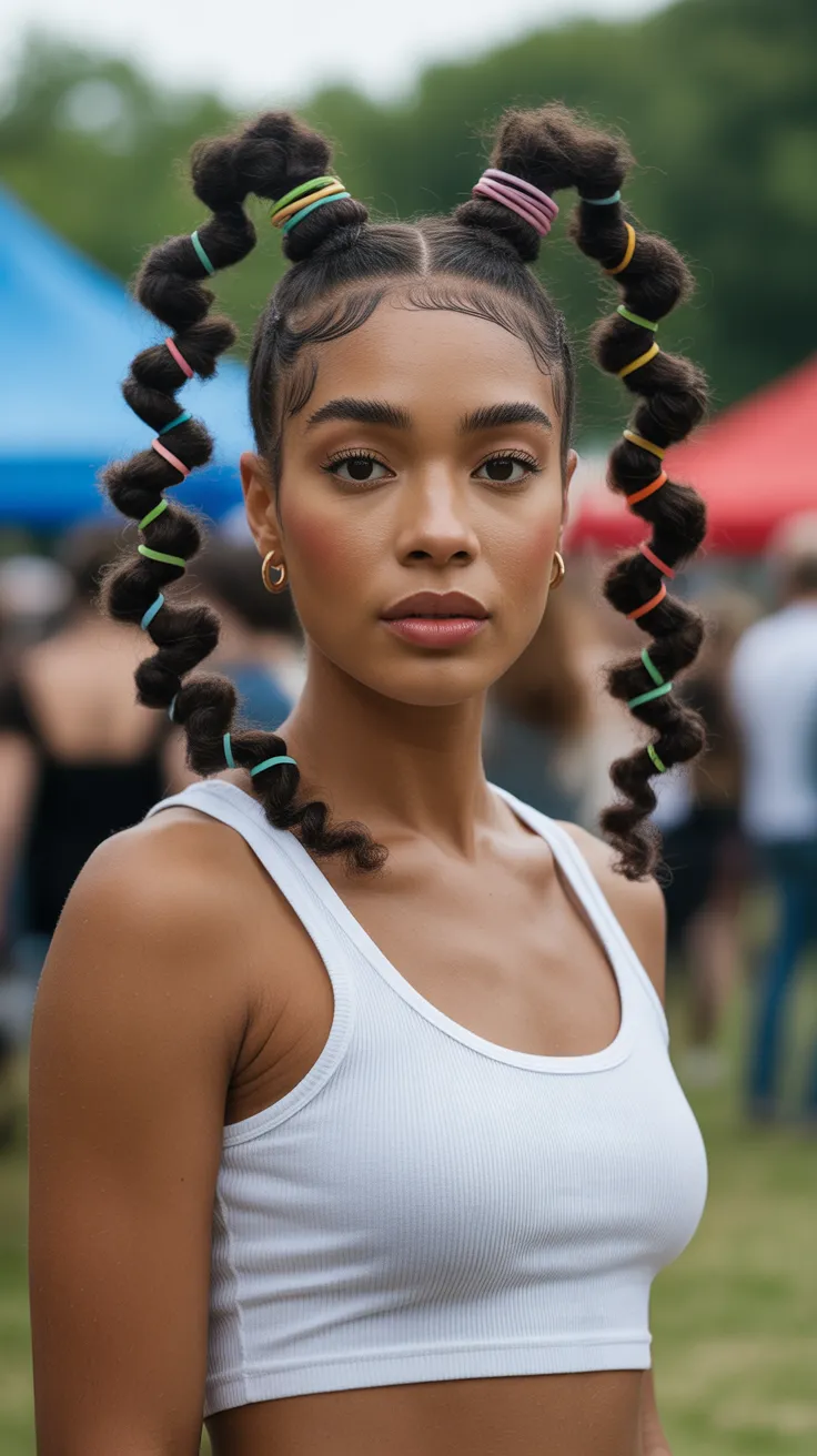 This hairstyle is perfect for various occasions, whether you’re heading to school, work, or a casual outing. It’s easy to achieve and can be customized with different colors of rubber bands or accessories. Plus, it’s a great way to keep your hair healthy while looking fabulous!