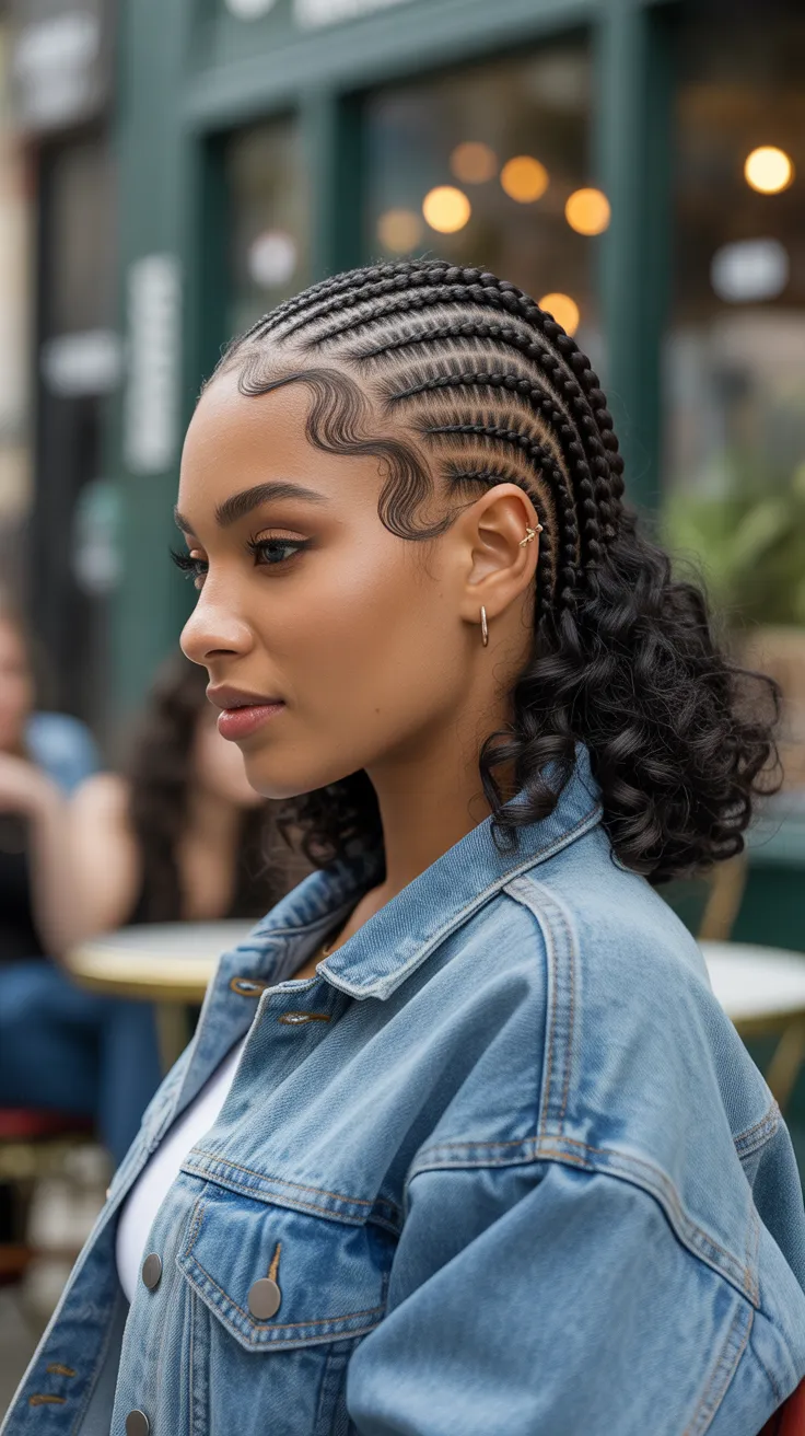 This hairstyle is perfect for natural hair, as it protects the strands while allowing for versatility. Whether you’re heading to work, a party, or just hanging out, rubber band side-part cornrow bands can elevate your look effortlessly.