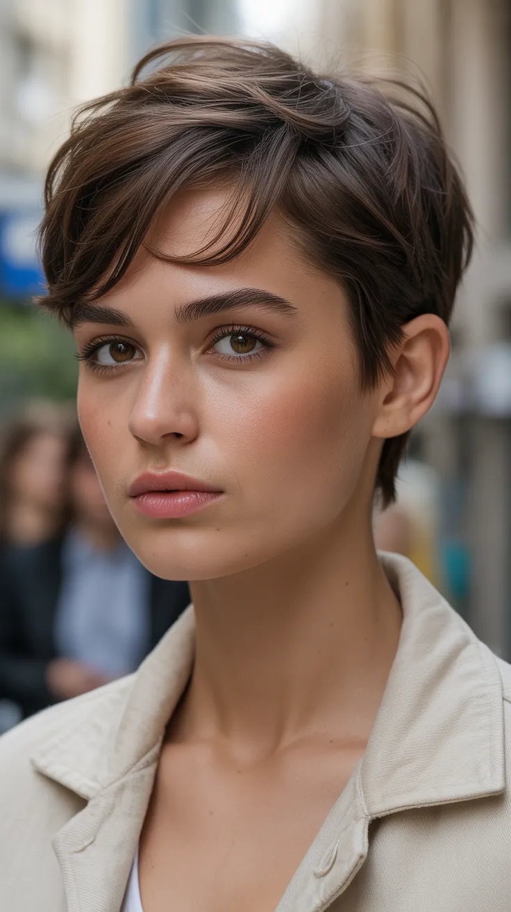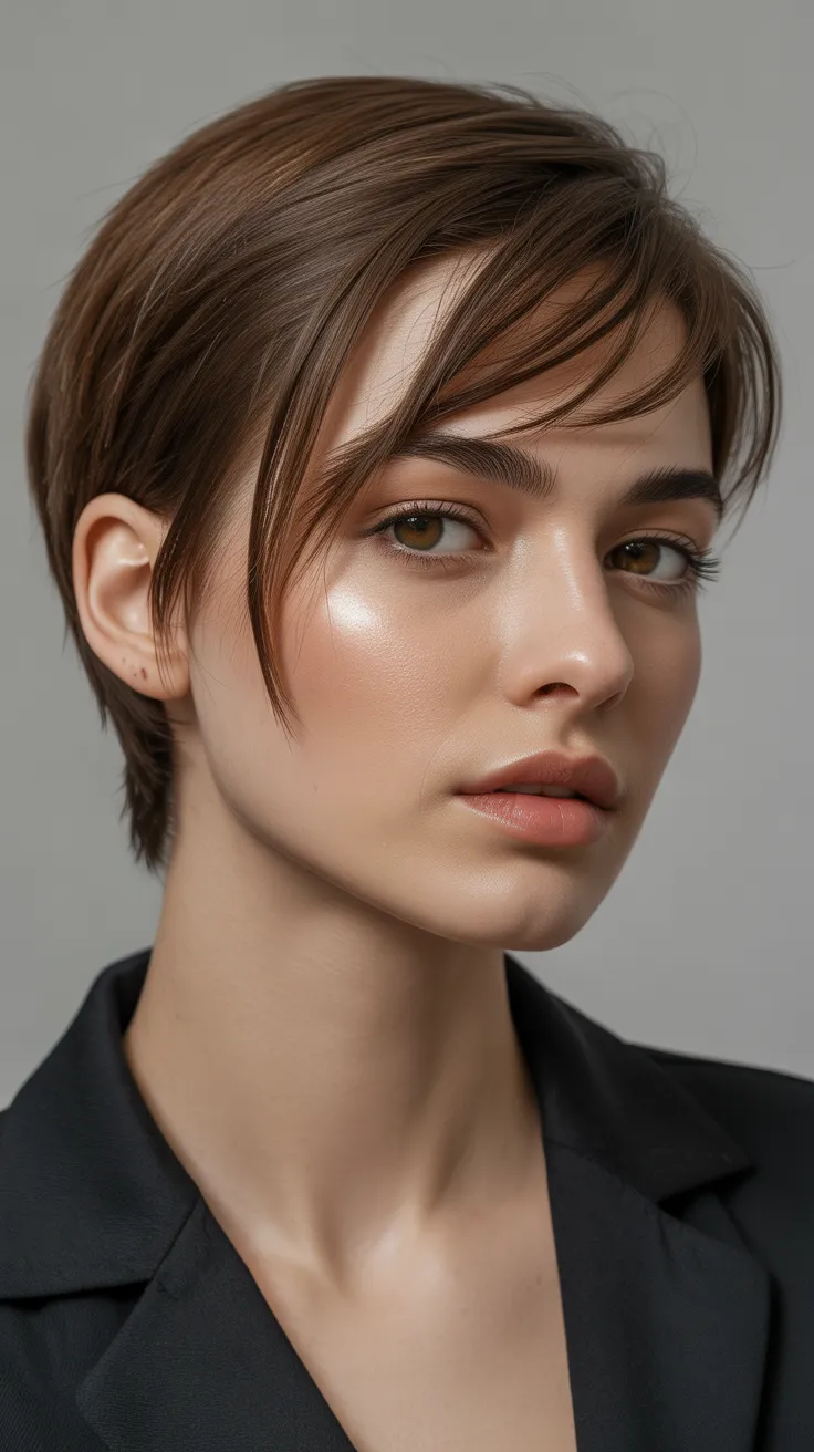1. Classic Brown Pixie With Side-Swept Bangs