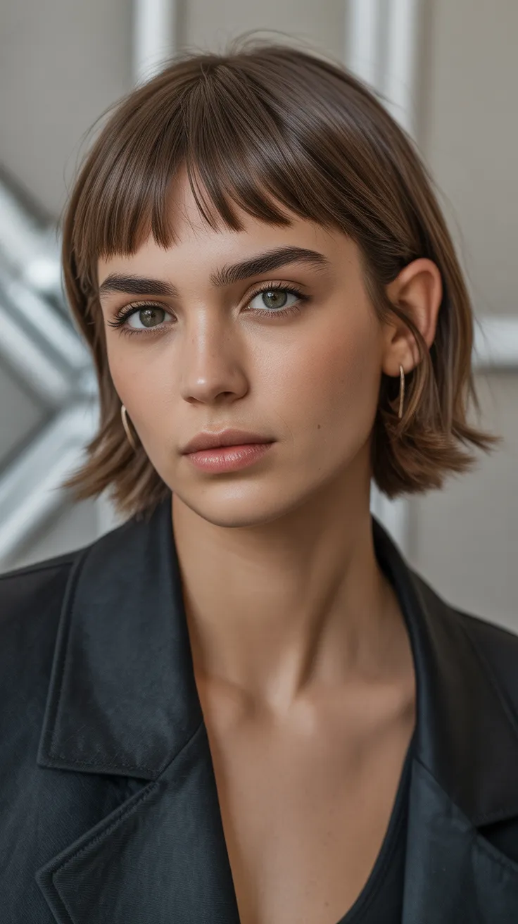 12. Chin-Length Brown Cut With Micro Bangs