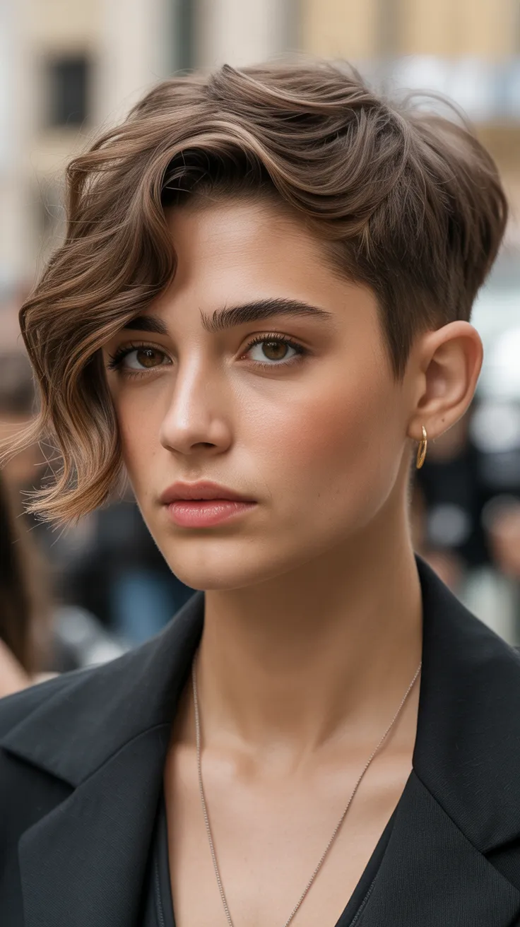 This tapered brown cut is a total dream hair look! The wavy texture adds a playful vibe, making it perfect for any hair day. If you’re thinking about short hair haircuts, this style is both pretty and practical.