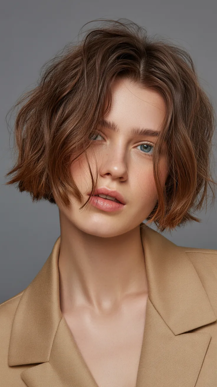 16. Tousled Brown Bob With Face-Framing Layers