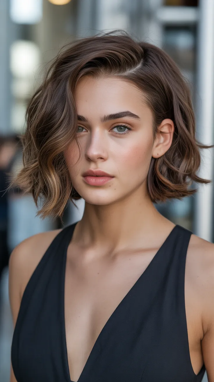 A short wavy brown lob with a side part is a perfect choice for those looking for pretty hairstyles that are both stylish and practical. This look adds a touch of elegance while keeping your hair manageable for any hair day. If you’re thinking about how to cut your hair, this lob might just be your dream hair come true!