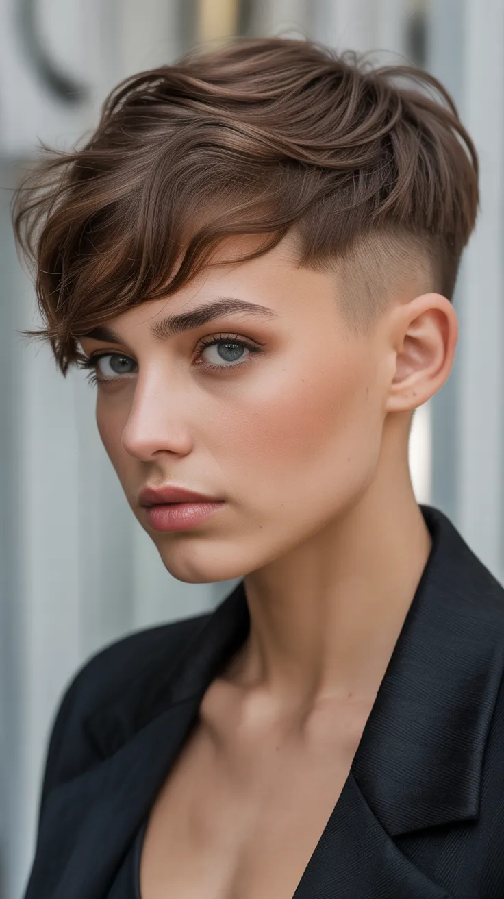 This short brown undercut is a stylish choice for anyone looking to refresh their look. The blended top adds a touch of flair while keeping things practical for your daily hair day. If you’re thinking about short hair haircuts, this could be your dream hair!