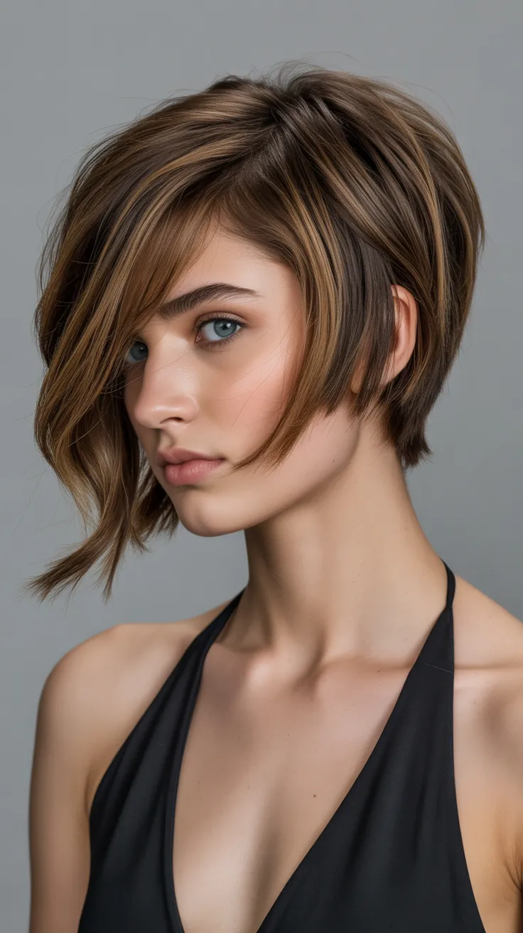Graduated layers can add a fun twist to short hair cuts for women, especially for those with a round face. This style creates movement and dimension, making it a great choice for short hair cute haircuts. Pair it with short bangs haircut for an even bolder look that frames the face beautifully.
