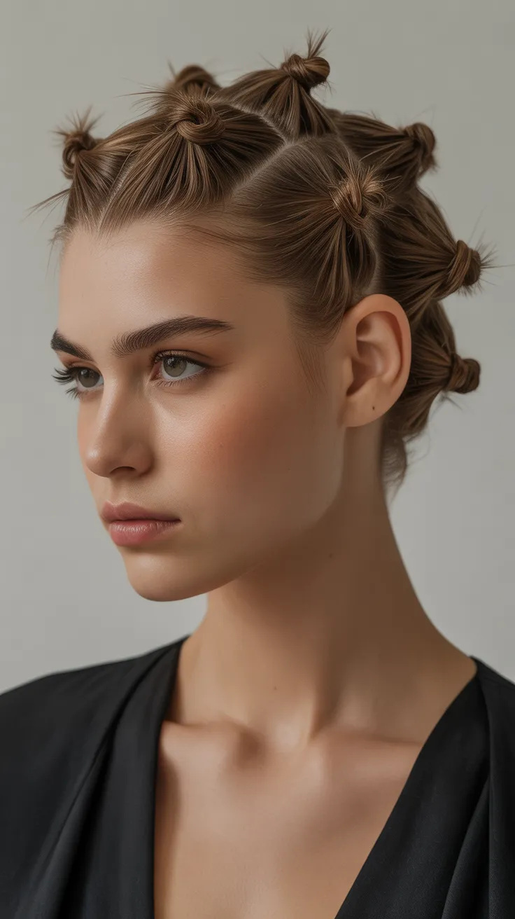 Twisted knots are a fun way to style short hair for any occasion. This easy hair updo adds a touch of charm and sophistication without much fuss. Perfect for weddings or casual outings, it’s a versatile choice that keeps your hair looking chic and neat.