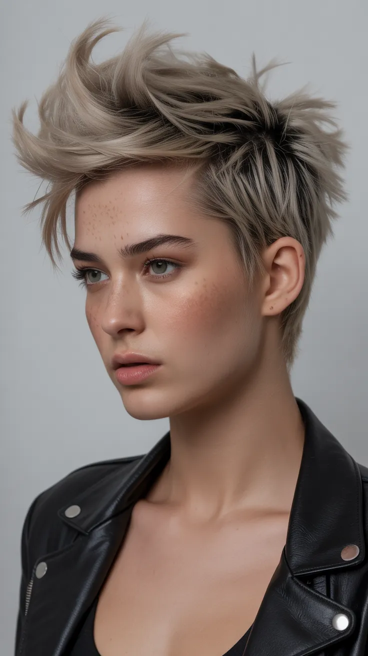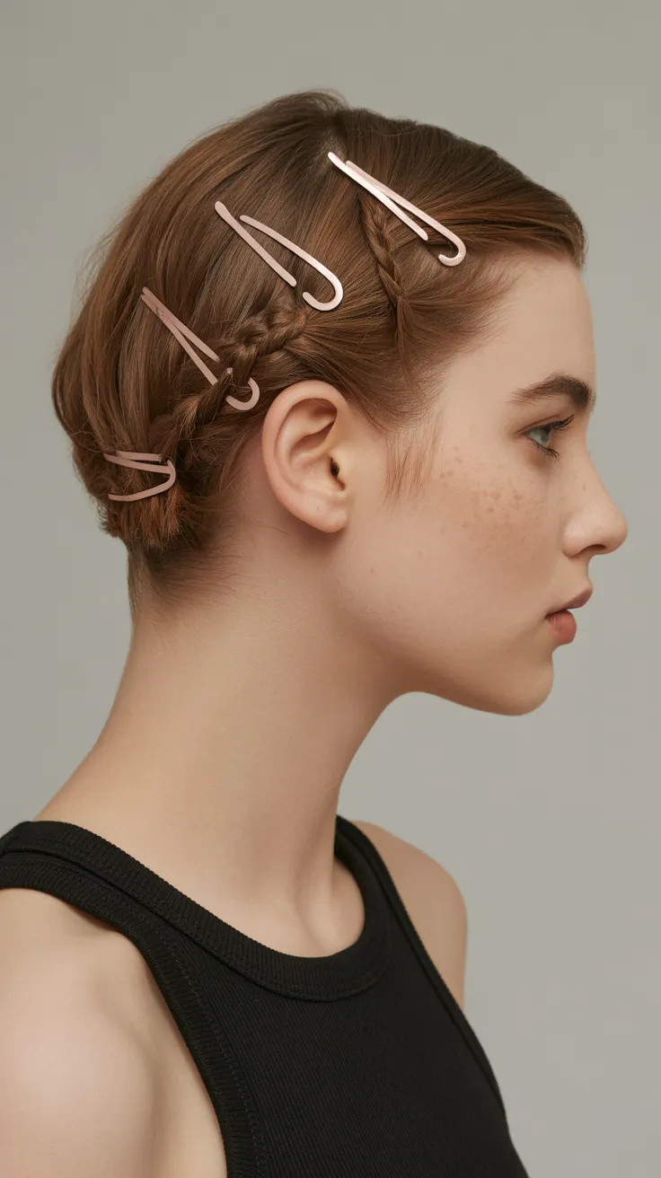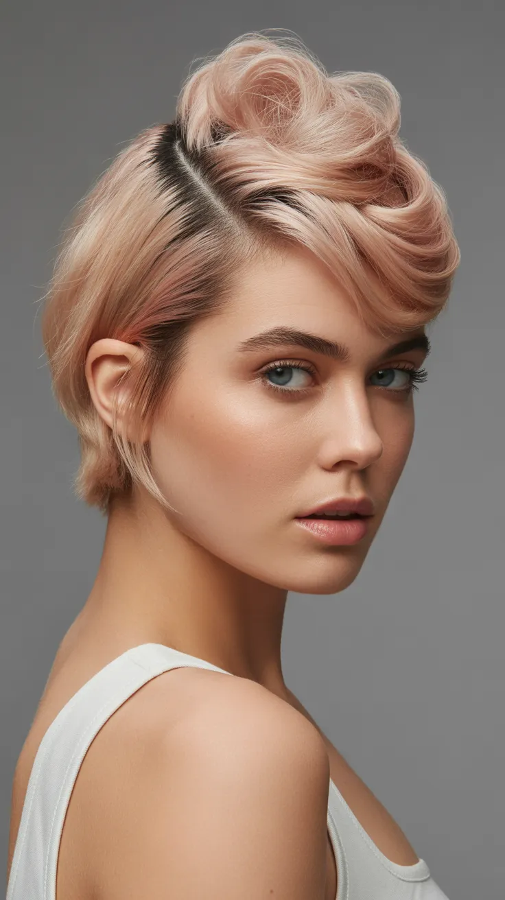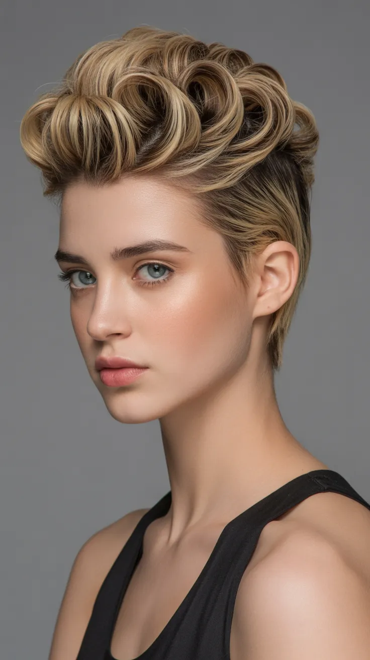 This grunge short hair updo is all about messy spikes that scream fun and attitude. It’s a perfect choice for anyone looking for easy hair updos that still make a statement. Whether you’re heading to a casual outing or a wedding, this style is effortlessly chic and totally unexpected.
