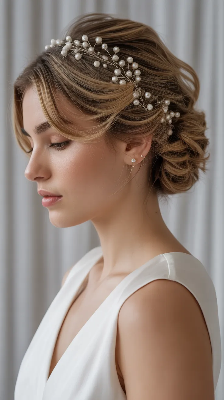 For a stunning wedding look, a short hair updo adorned with pearl pins is a fantastic choice. This style is not only chic but also easy to achieve, making it perfect for brides who want something simple yet stylish. Pairing a short curly hair updo with these elegant accents can truly elevate your wedding hair up game!