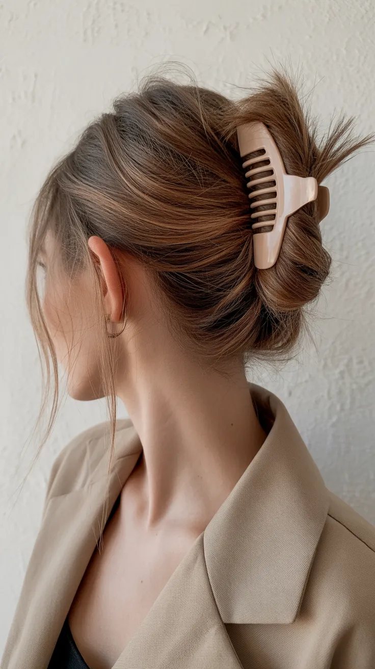7. Easy Hair Updo For Short Hair With Claw Clip