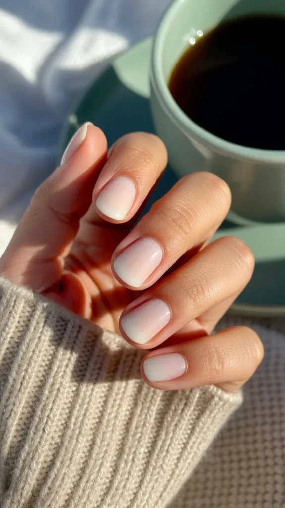 βοΈ Keep it balanced: Soft square or rounded shapes make winter nails short styles look neat and feminine.