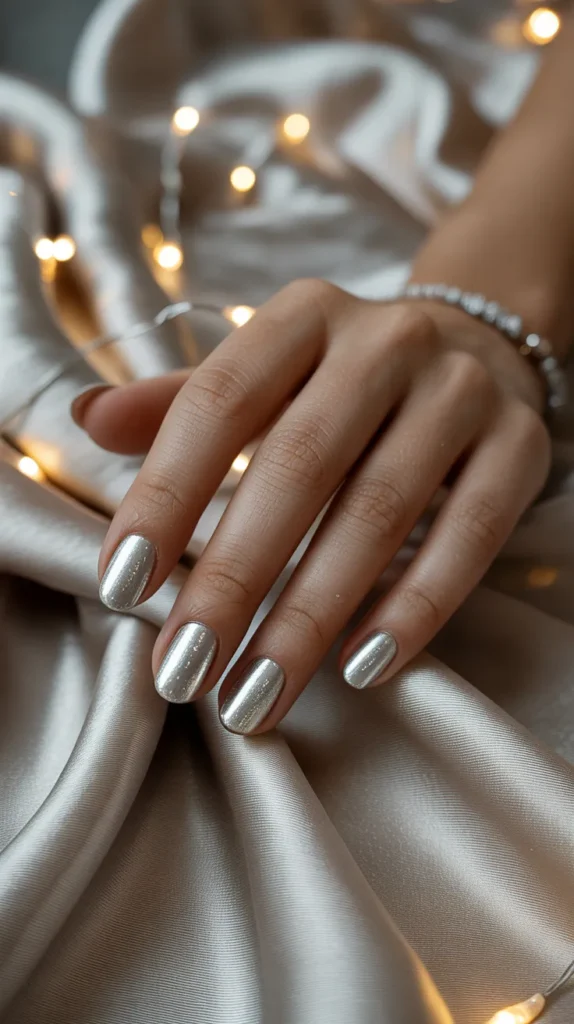 Frosted silver chrome nails are sleek, modern, and icy-cool. The metallic sheen reflects light like fresh snow perfect for xmas nails that bring futuristic glam. Pair them with a simple outfit for maximum shine. β¨