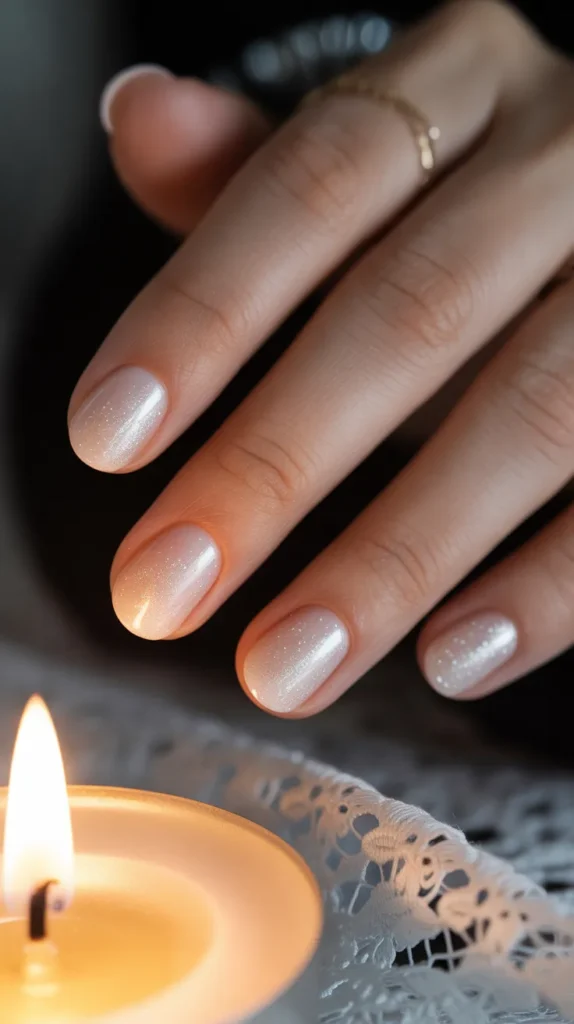 Pearl white minimal nails glow softly under winter light. The micro-glitter adds dimension while keeping the finish sleek and subtle. Itβs the epitome of classy nails and pairs beautifully with every December nails outfit. π€β¨
