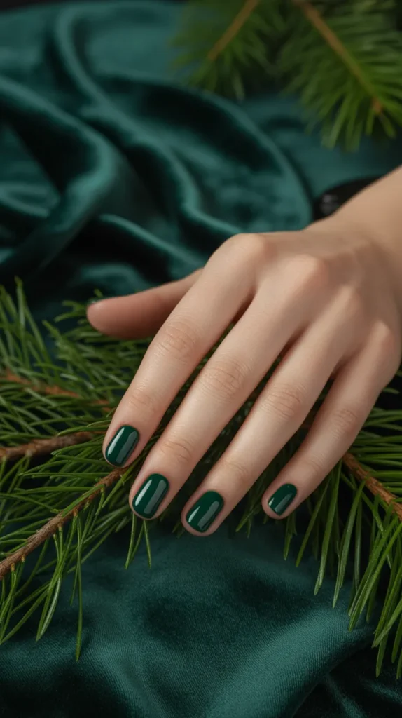 Deep emerald short nails give instant luxury vibes. The rich green tone channels that cozy December nails energy while staying classy and sophisticated. Itβs a color that flatters every skin tone and feels festive without being flashy. π