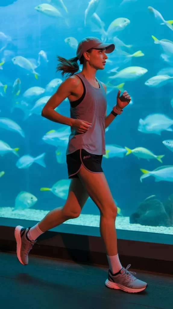 Athletic shorts with a running tank blend sporty and casual into one sleek look. Black shorts and a breathable top keep it performance-driven, while trainers and a baseball cap make it street-style ready. Imagine jogging past a glowing aquarium wall filled with colorful fish, your outfit moving seamlessly with you 🐠. This style works perfectly for workouts but also doubles as an athleisure outfit for errands. It’s practical, stylish, and effortlessly cool. Add a bomber jacket for evenings, and it instantly feels elevated. Women love this look because it balances function and fashion in one go.