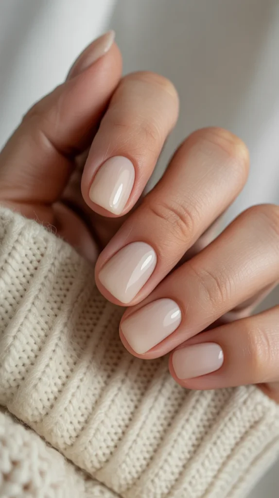 1. Short Nude Beige Gel Nails