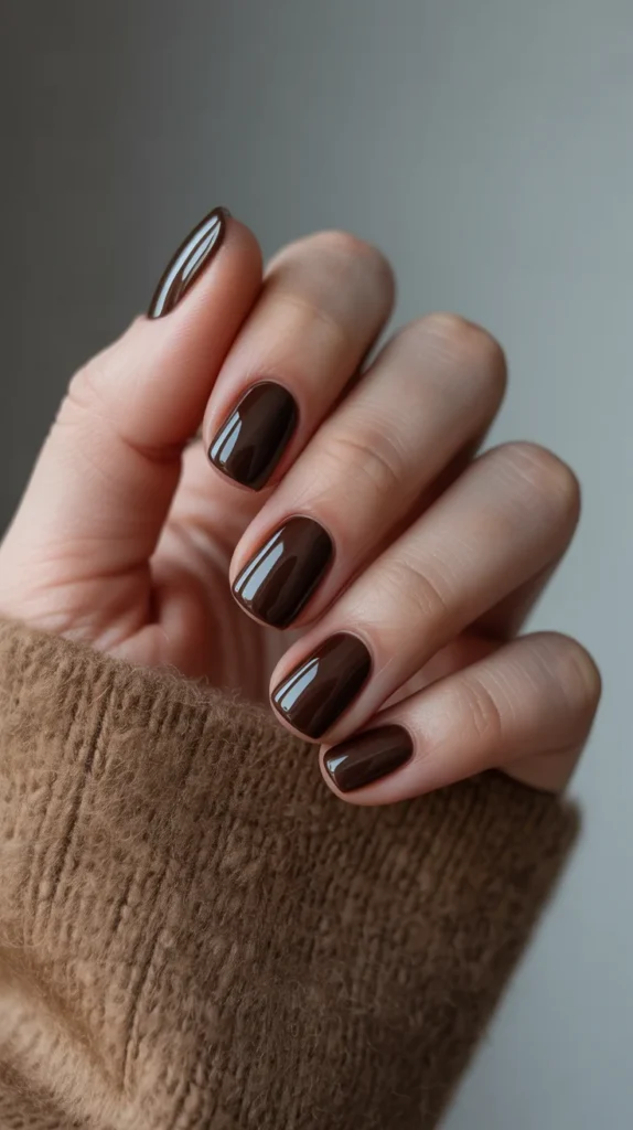 11. Deep Chocolate Brown Gel Nails