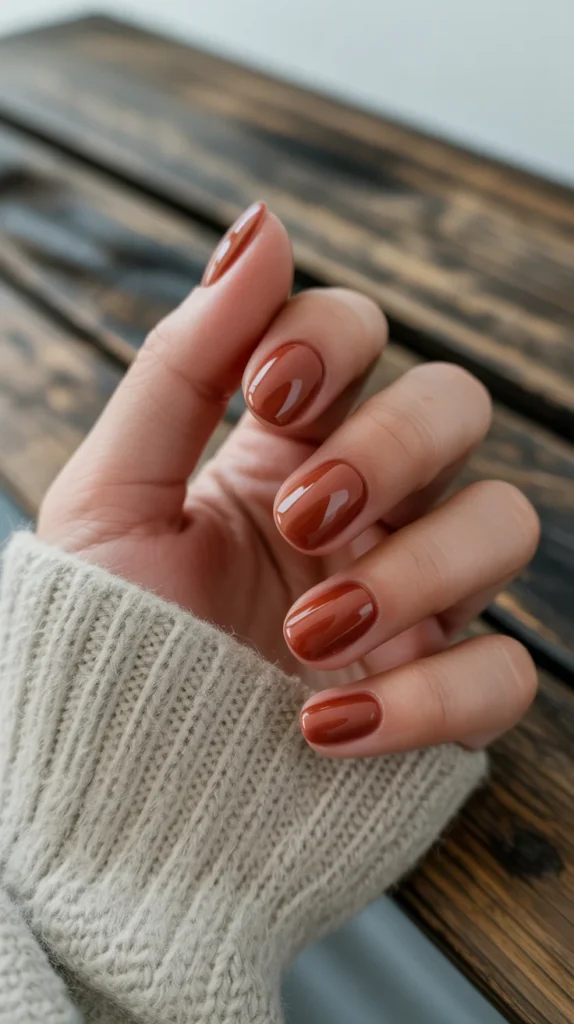 14. Glossy Terracotta Nails