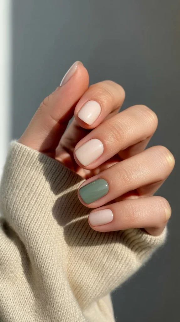 Want to keep things neutral but not boring? Go nude beige on most nails and add one accent in sage or dusty peach. It’s subtle variety that makes your autumn nails feel fresh without overdoing it.