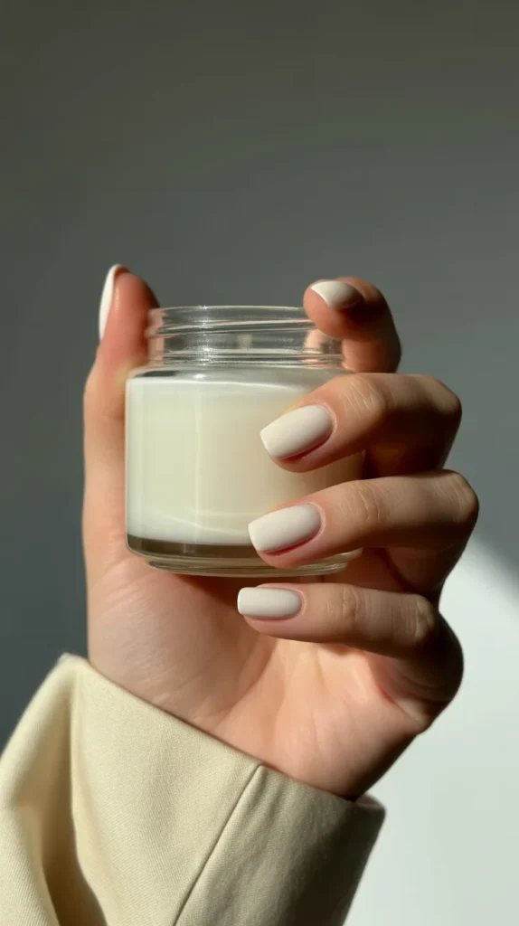 Off-white nails with a creamy undertone feel fresh but cozy. Think “not stark white, but not yellow either.” Clean, minimal, and perfect if you love autumn nails that whisper instead of shout.