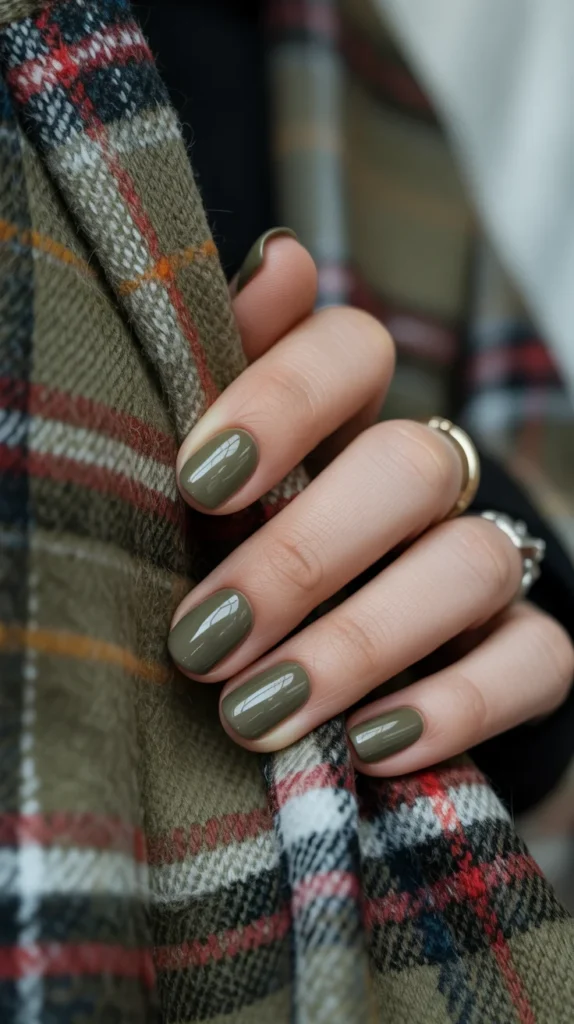 Olive green in a glossy gel finish is always a win for autumn nails. 🌿 Short nails make it practical while still trendy. Honestly, it’s the kind of shade that makes you look more “put together” instantly.
