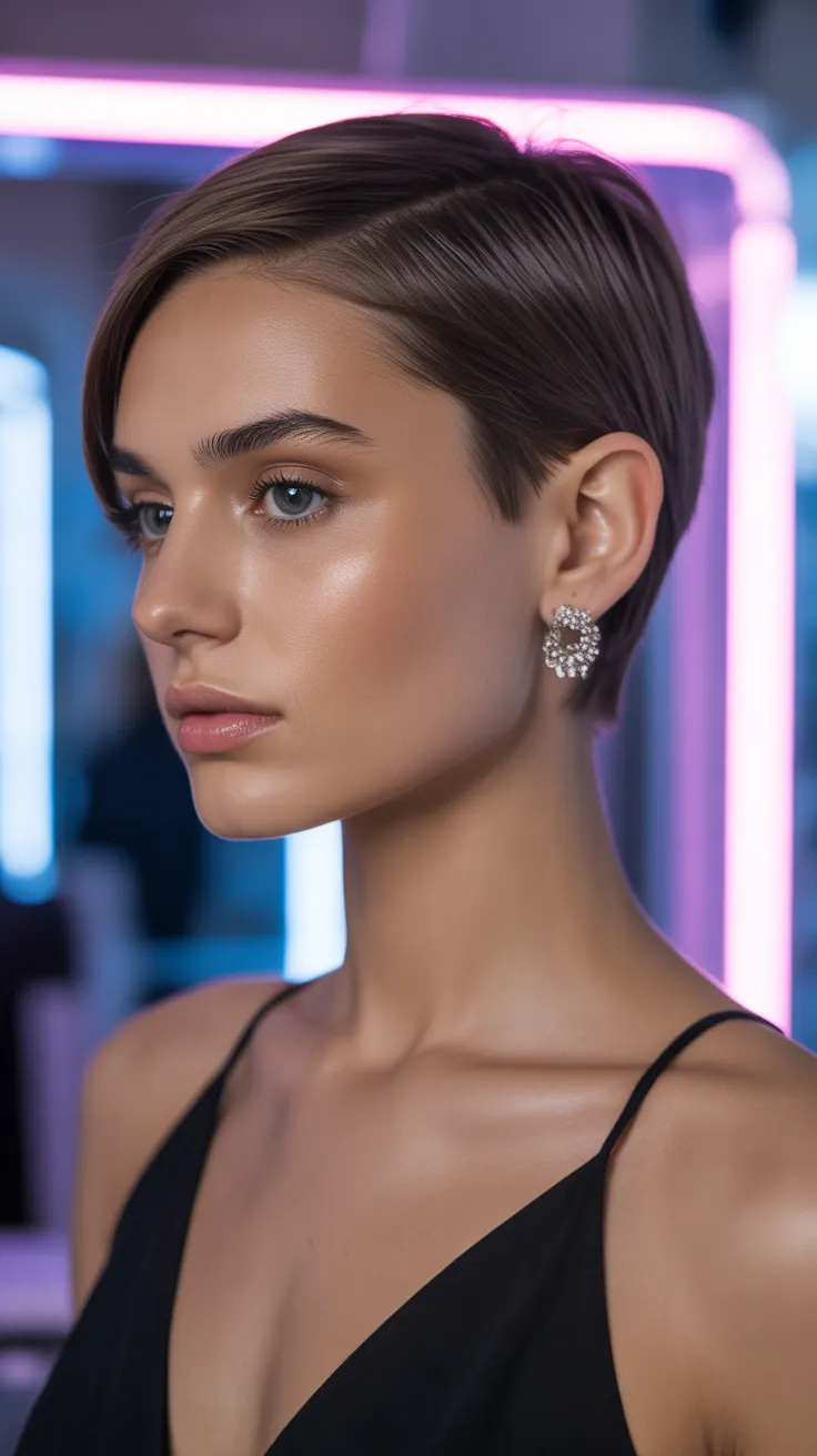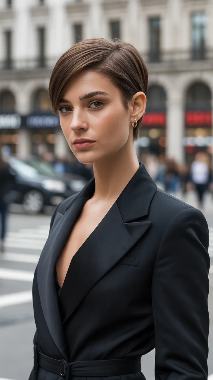 The sleek pixie cut is a stunning choice for anyone looking to make a bold statement with their hair. This style is all about clean lines and a polished look, making it perfect for both casual and formal occasions.