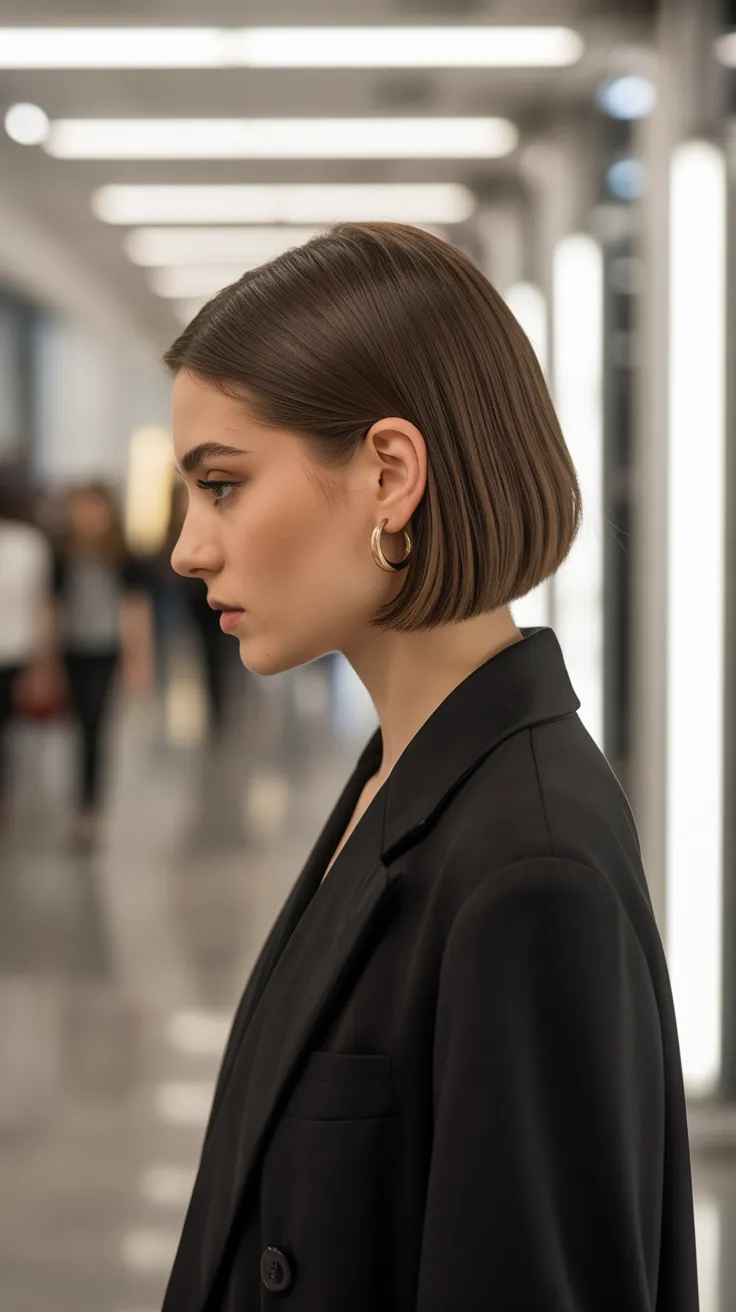 This haircut is perfect for those who want a polished look without too much fuss. With its sleek lines, it gives off a sophisticated vibe while remaining low-maintenance. You can easily style it with a bit of serum for that shiny finish.