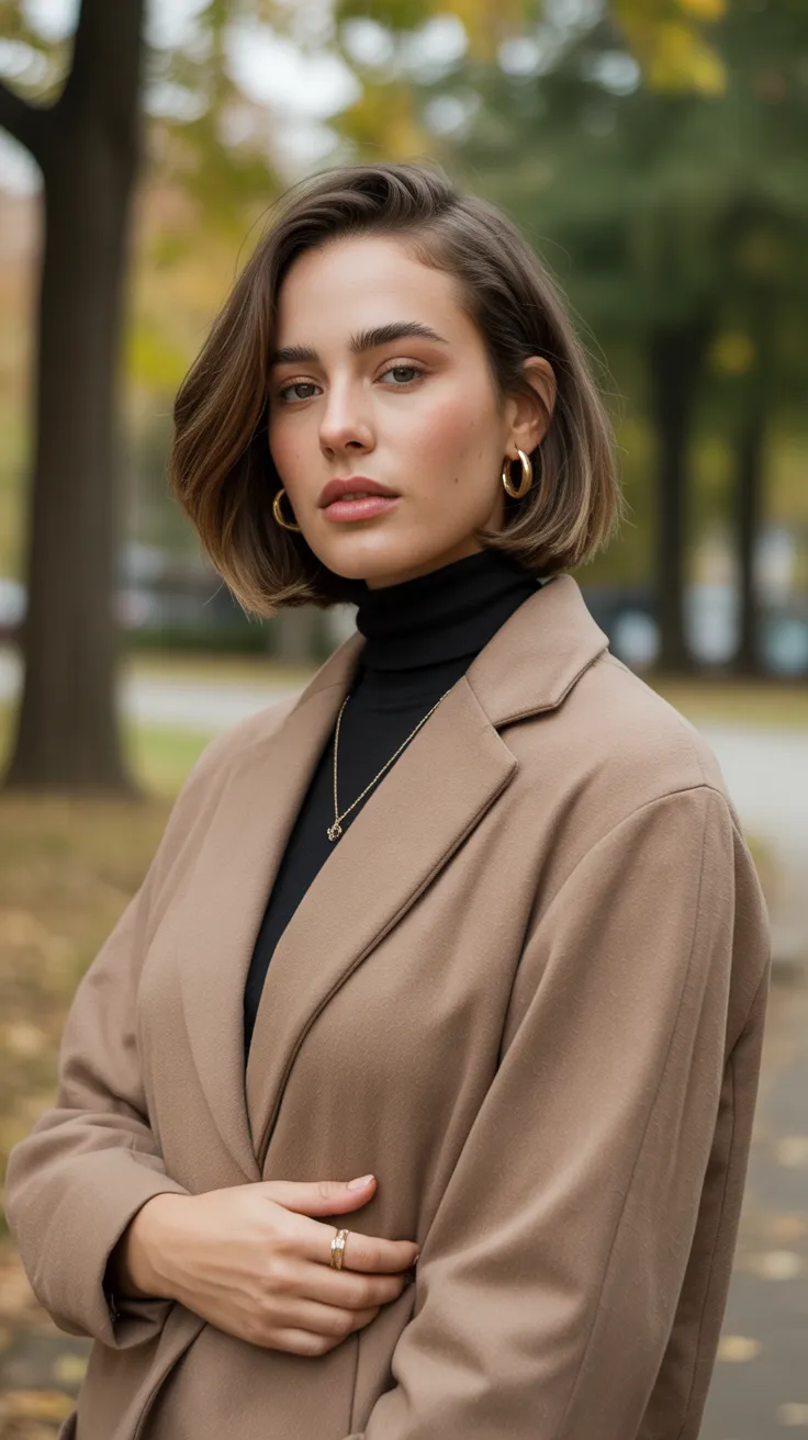 Pair it with a cozy sweater, like the one in the image, for a relaxed yet put-together appearance. This style is not just practical; it also showcases your facial features beautifully. If you’re searching for short haircut inspo, the tucked-in bob is definitely worth considering!