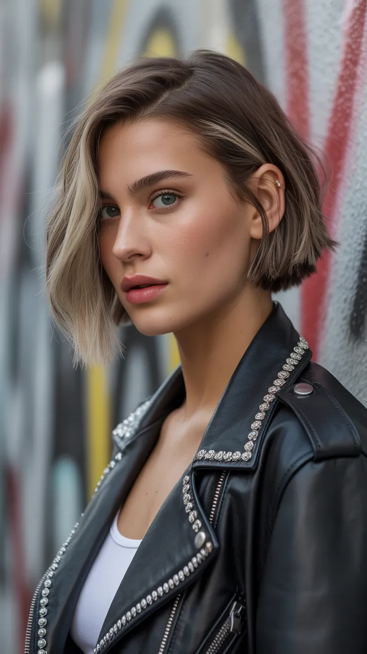 The model in the image showcases a sleek bob that perfectly frames her face. The straight strands give a polished look, while the shaggy layers add a playful vibe. This style is low-maintenance, making it ideal for busy days.