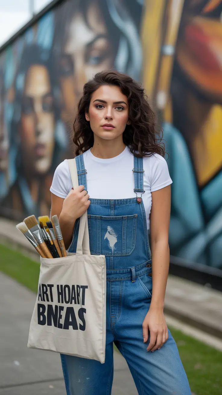 14. Art Hoe Aesthetic In Overalls & Tote Bag