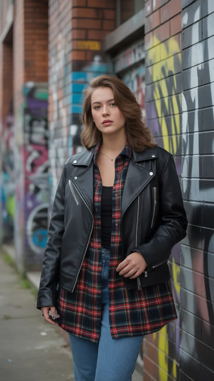 2. Grunge Aesthetic Outfit With Plaid & Leather