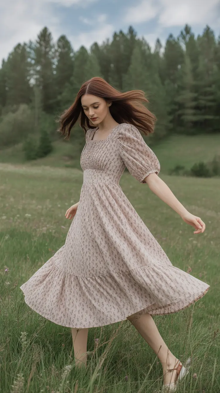 The cottagecore aesthetic is all about embracing nature and simplicity. A floral midi dress perfectly captures this vibe. The dress features soft, pastel colors and delicate floral patterns, making it a staple for anyone looking to channel that cozy, countryside feel.