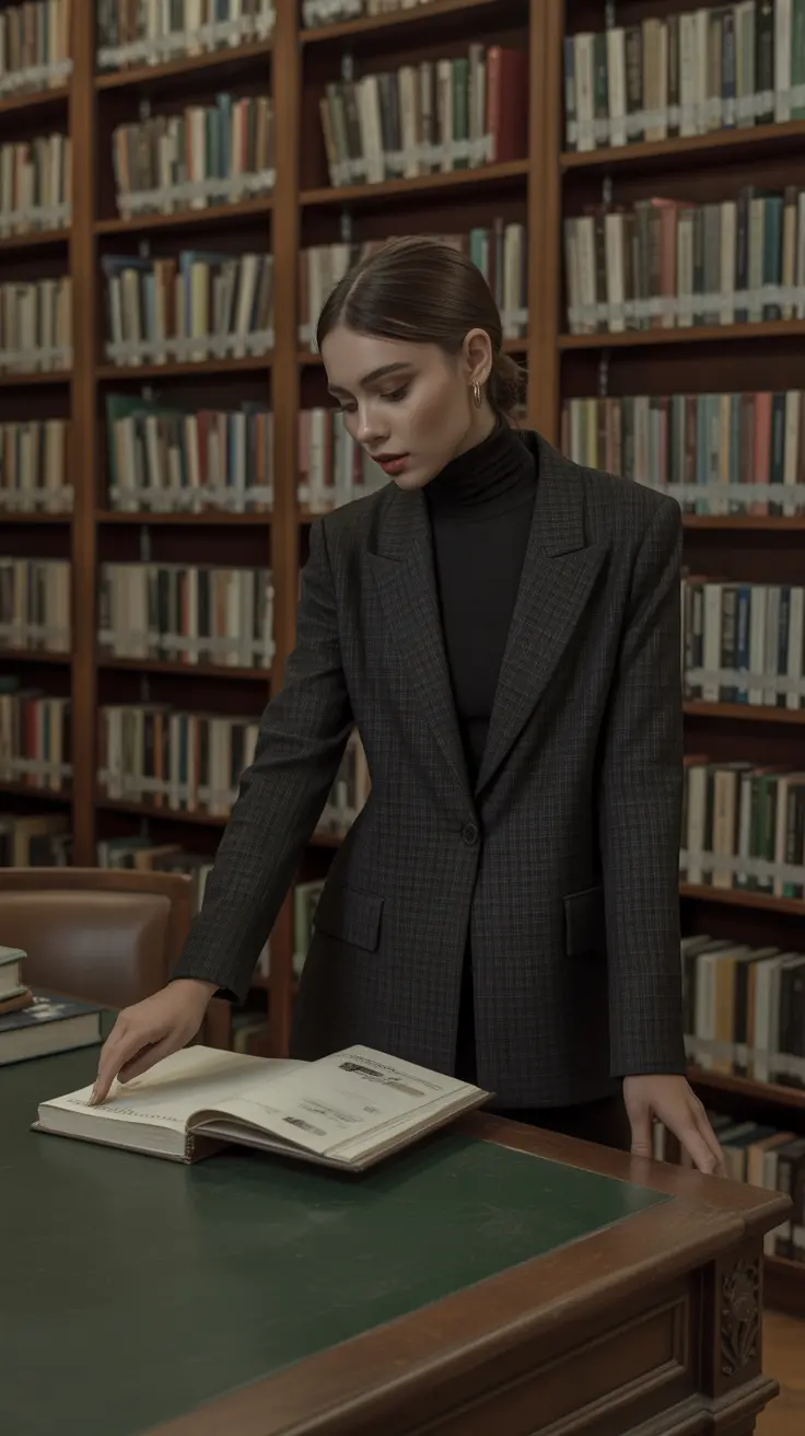 5. Dark Academia Aesthetic With Blazer & Turtleneck