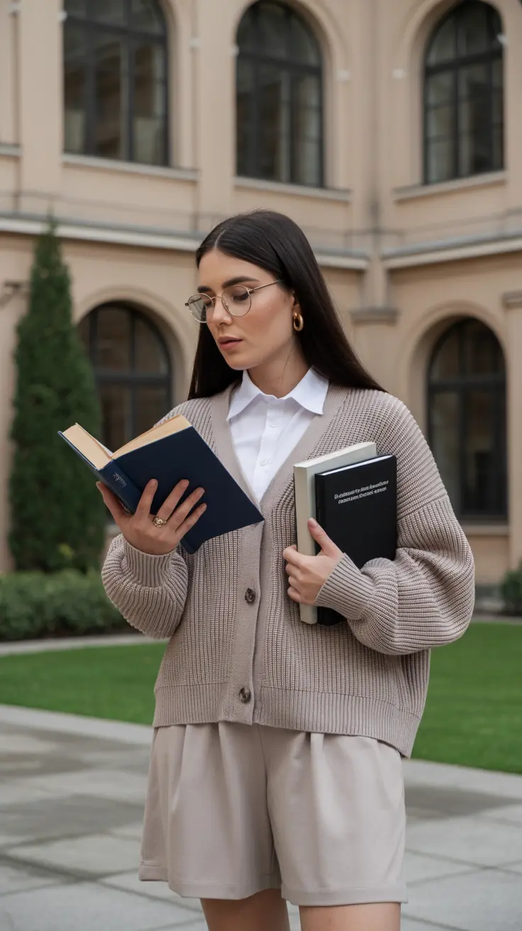 7. Light Academia With Soft Layers & Books
