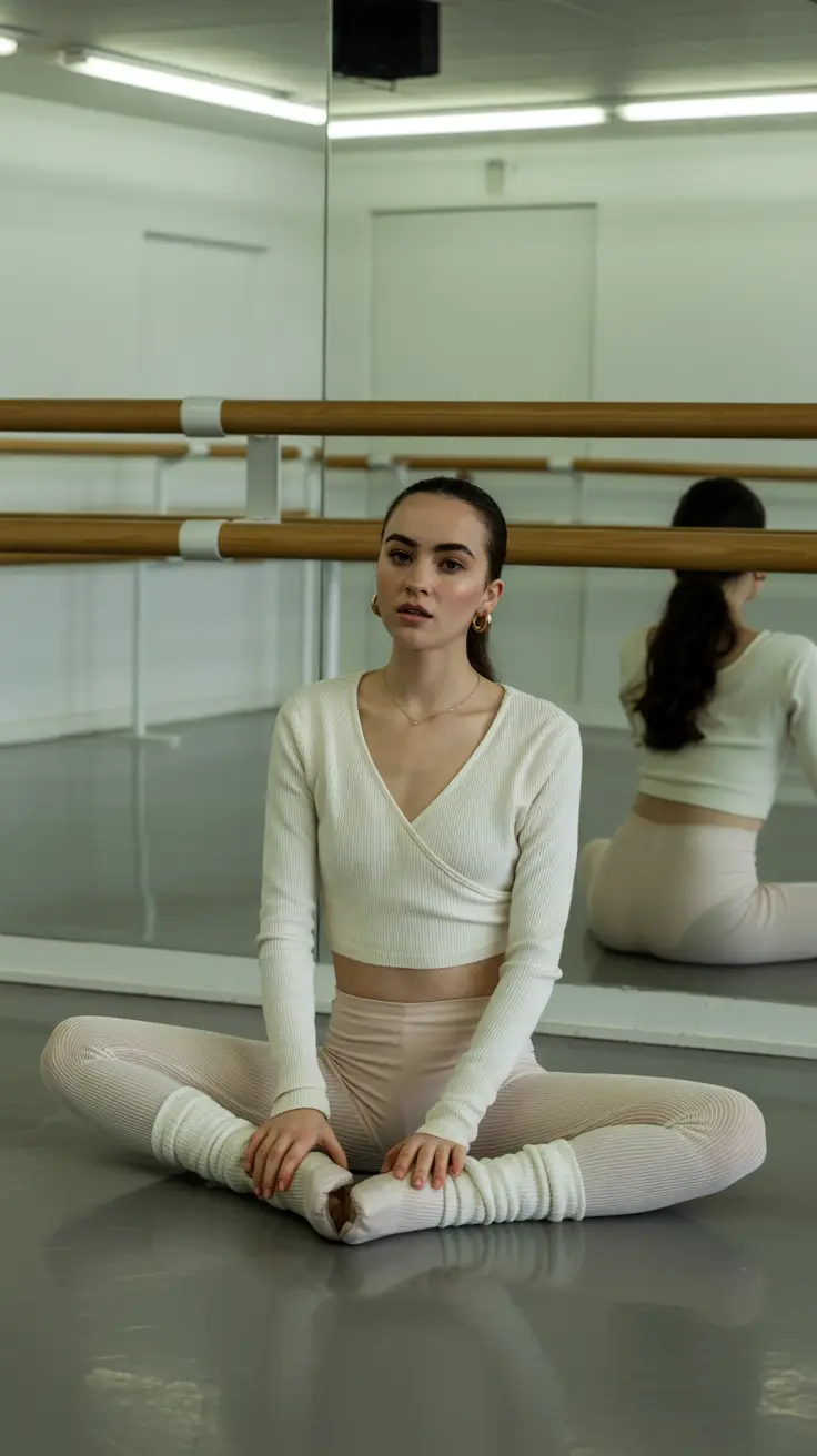 8. Balletcore Aesthetic With Wrap Cardigan & Leg Warmers