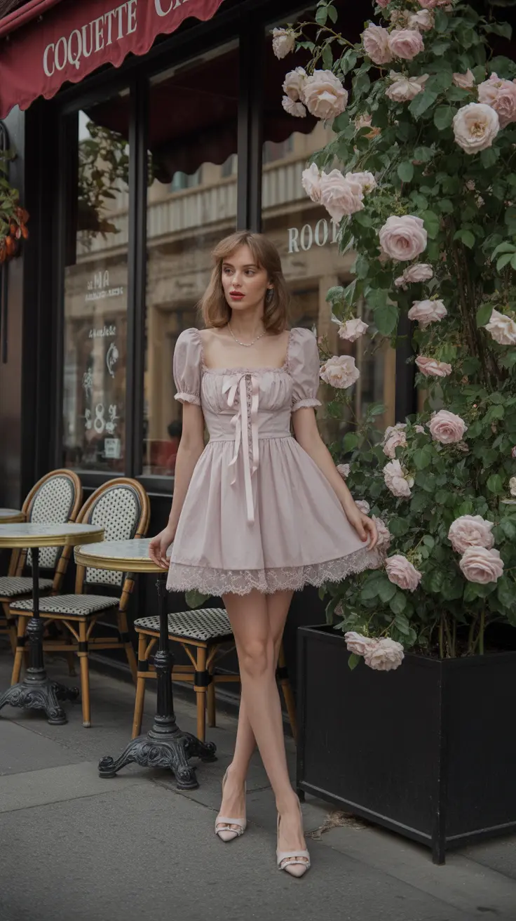 The Parisian chic aesthetic is all about effortless style. Picture a classic beret paired with a tailored blazer, creating a look that feels both polished and relaxed. This outfit captures the essence of coquette fashion, blending sophistication with a playful vibe.