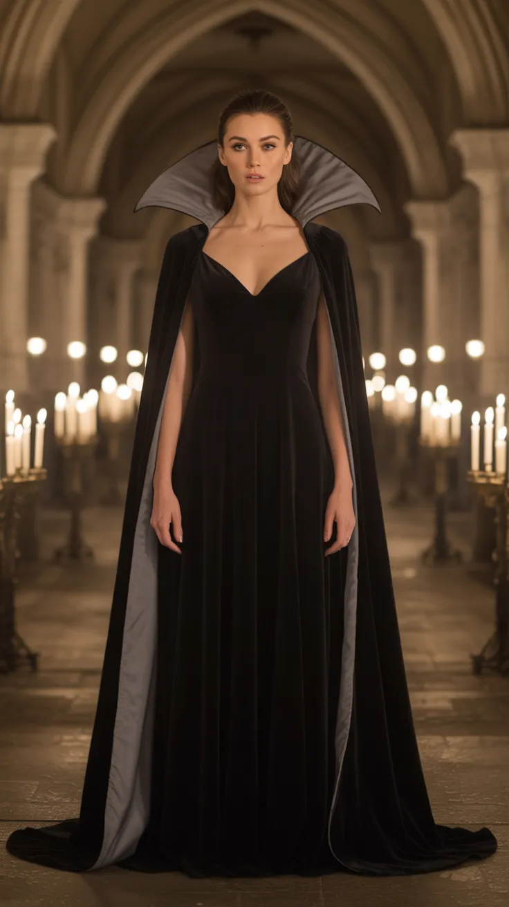 1. Classic Vampire Lady In Velvet Gown And Dramatic Cape