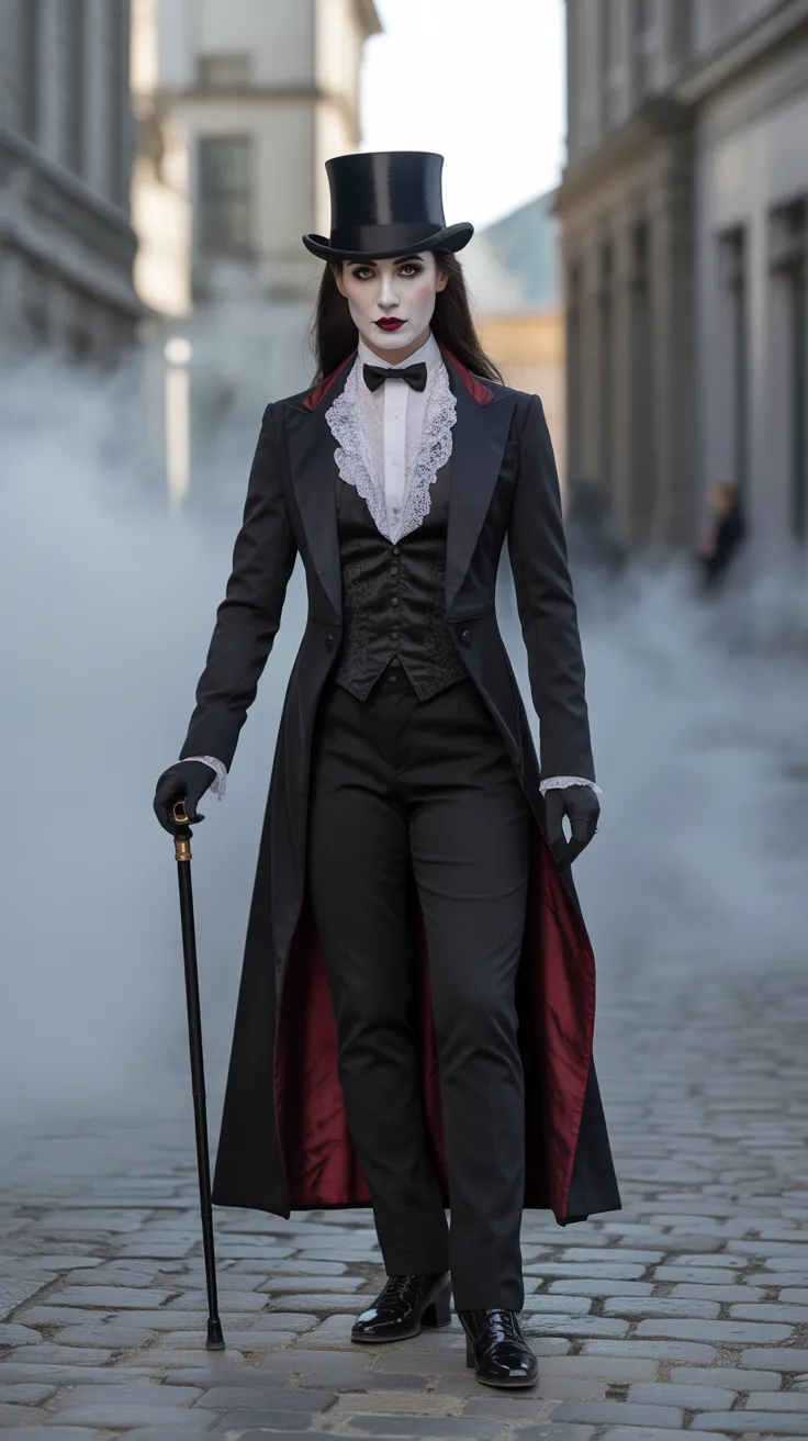 The Dracula costume with a tailcoat and top hat is a classic choice for a goth Halloween costume. This look combines elegance with a hint of mystery, making it perfect for those who want to channel their inner vampire. Pair it with a cane and some dramatic makeup for a stunning vampire Halloween costume that will turn heads.